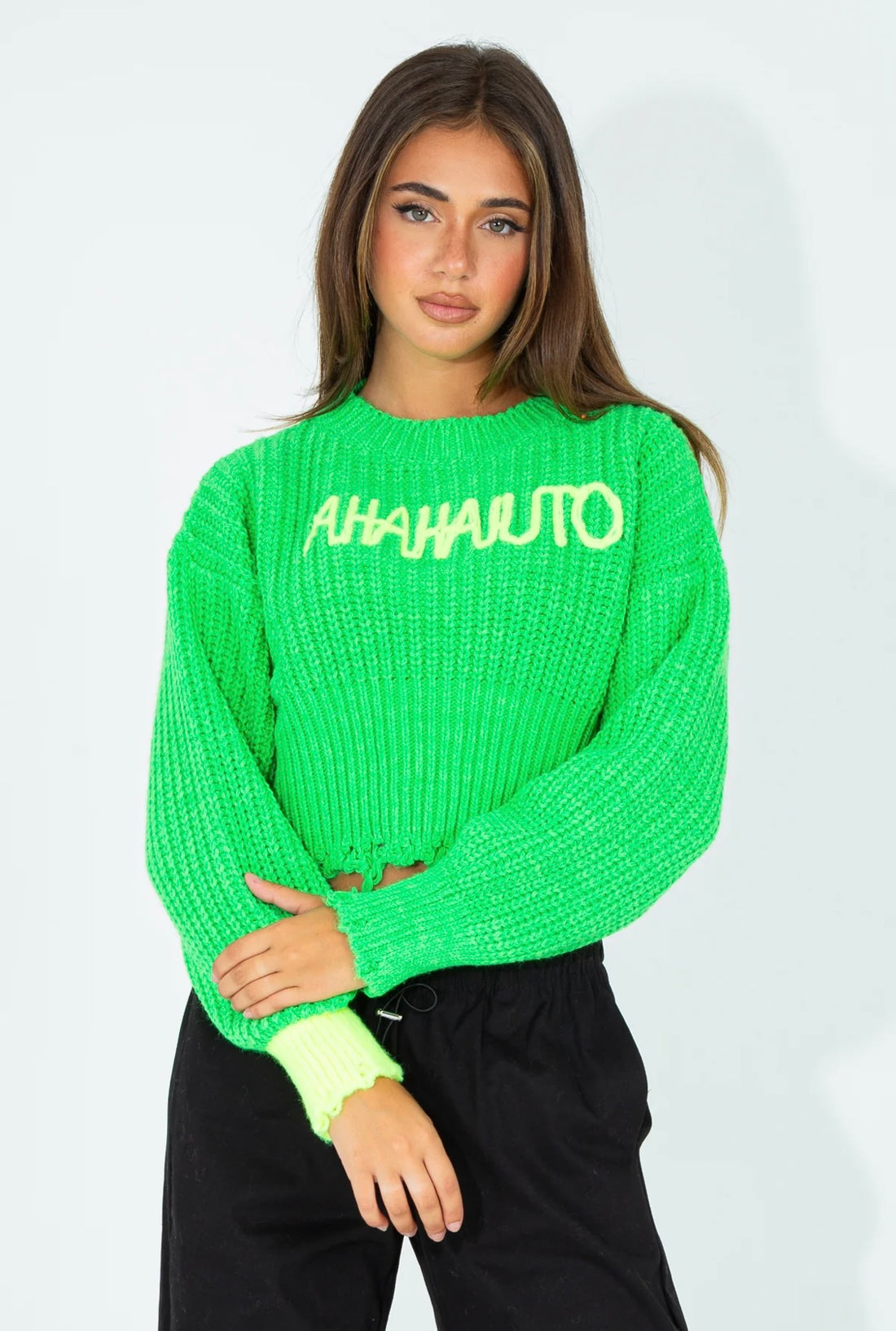 SHOP ART MAGLIA LUPETTO CROP CON FRASE RICAMATA