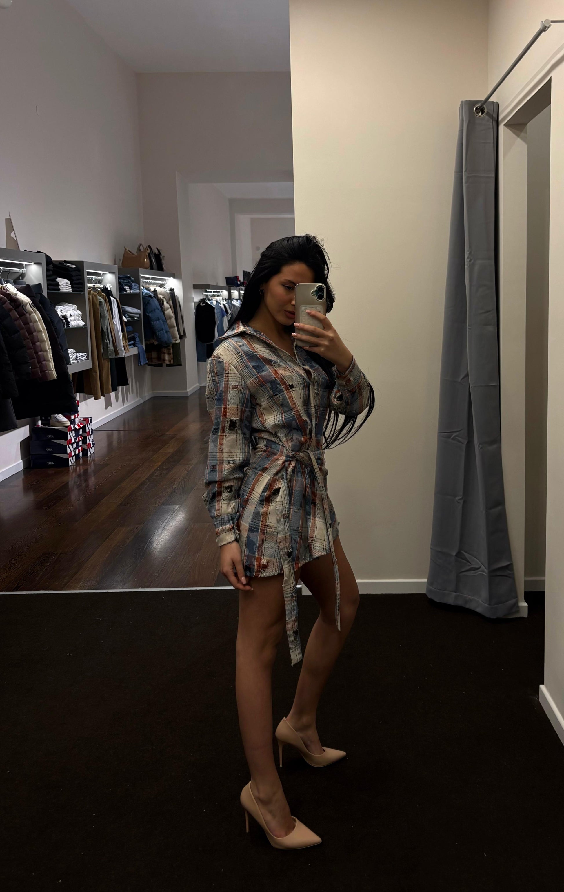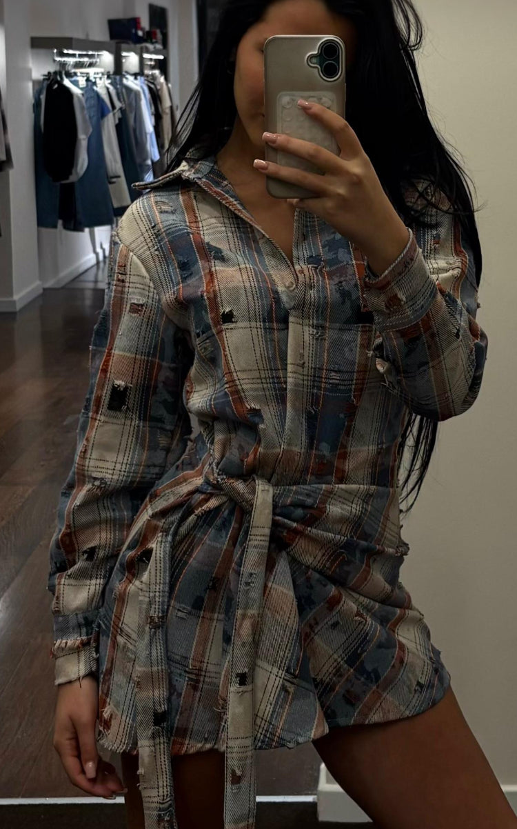Abitino in fantasia patchwork,collo a camicia con bottoni.Realizzato dal brand King Kong,un’azienda tutta al femminile .Bello anche da matchare sul sul tuo jeans preferito.