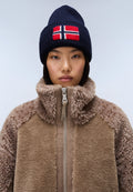 Caratterizzato da grafiche rétro, il berretto Evie è realizzato con un tessuto contenente il 50% di lana per offrire calore extra.