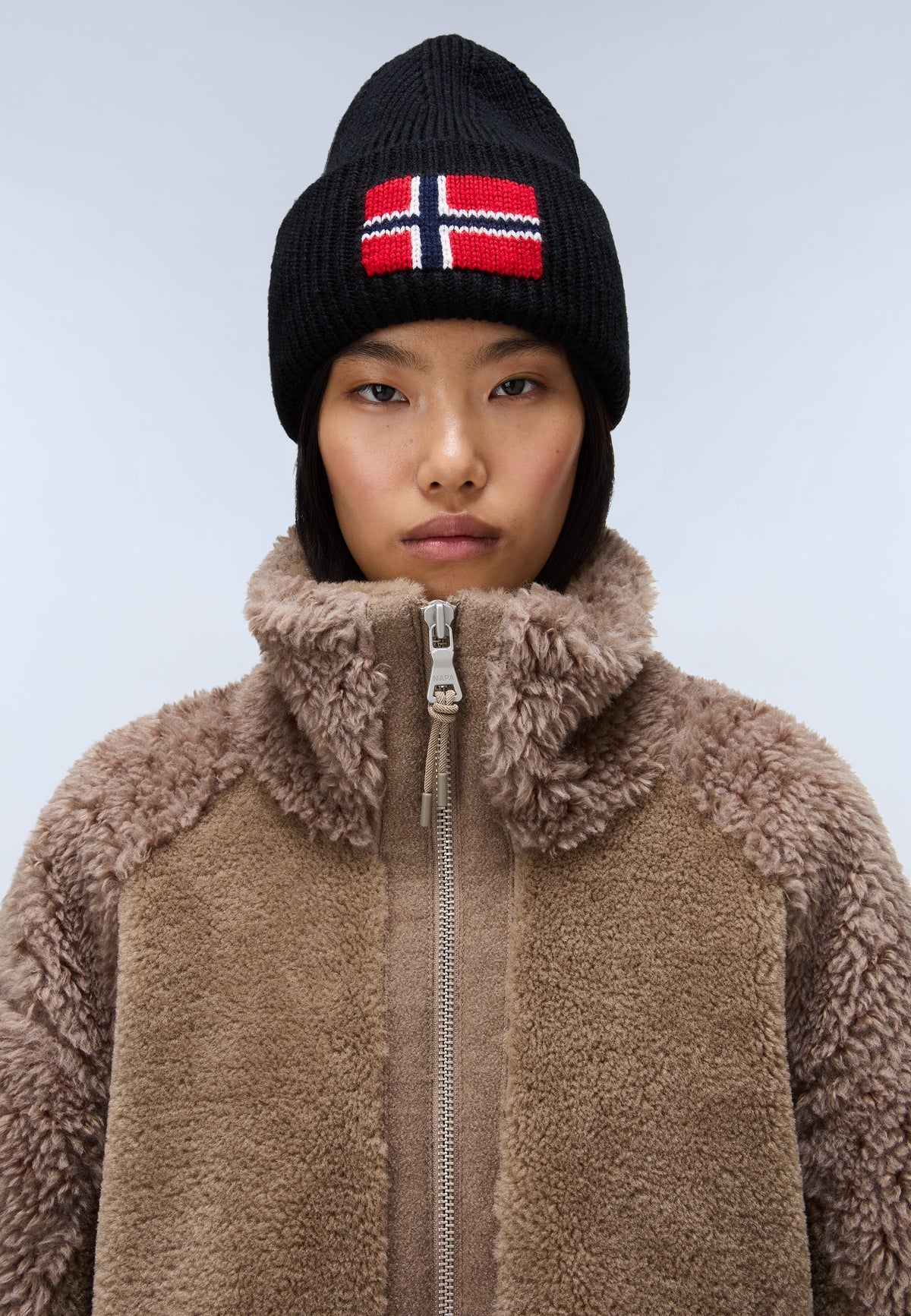 Caratterizzato da grafiche rétro, il berretto Evie è realizzato con un tessuto contenente il 50% di lana per offrire calore extra.