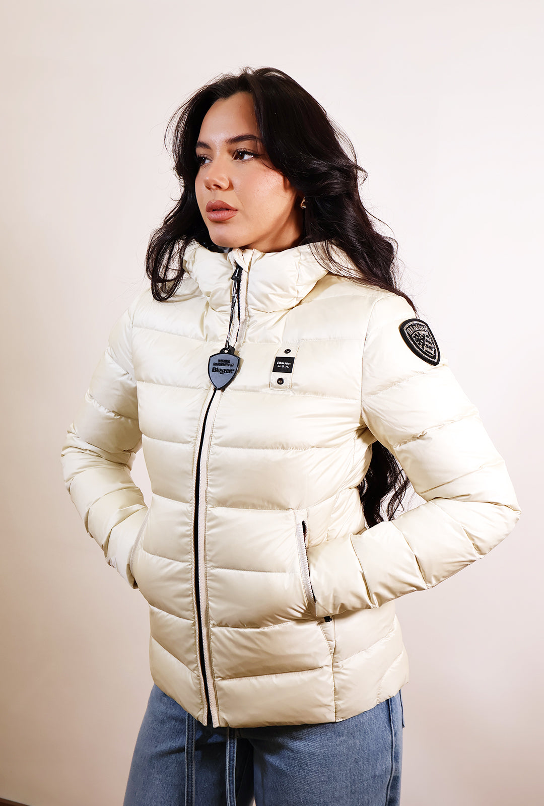 Piumino Blauer avvitato ,imbottitura in piuma d’oca.Dal Fit aderente segna la silhouette slanciando la figura.