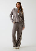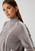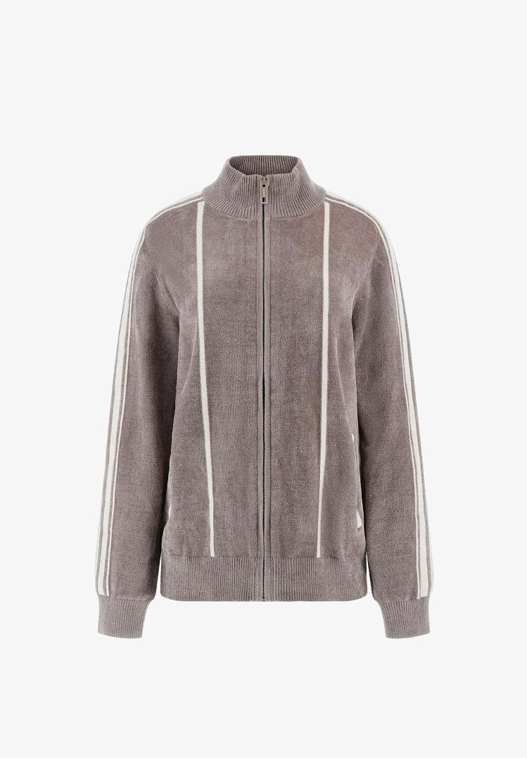- Felpa con zip intera in ciniglia misto viscosa stretch.