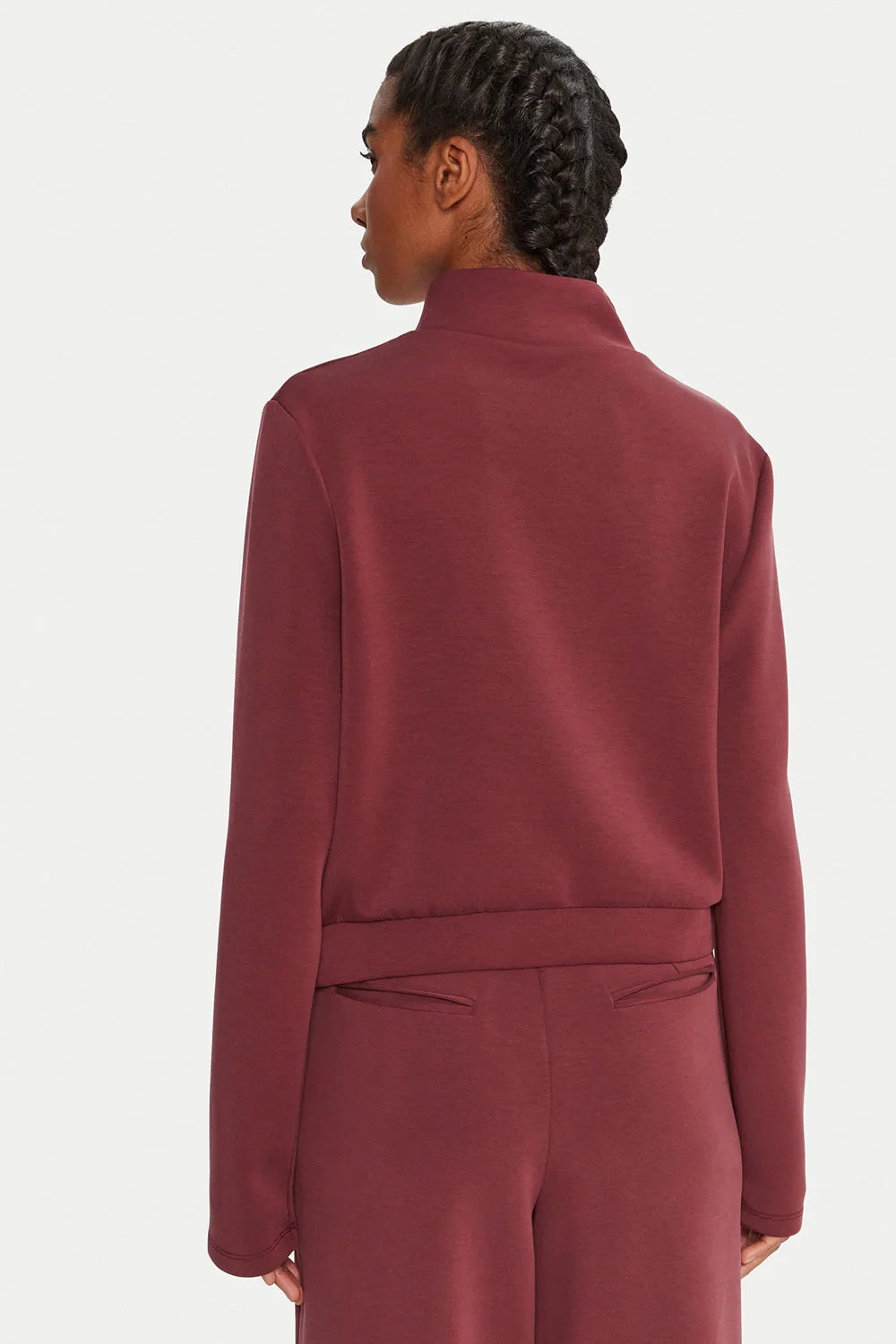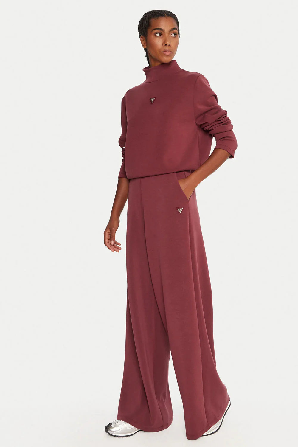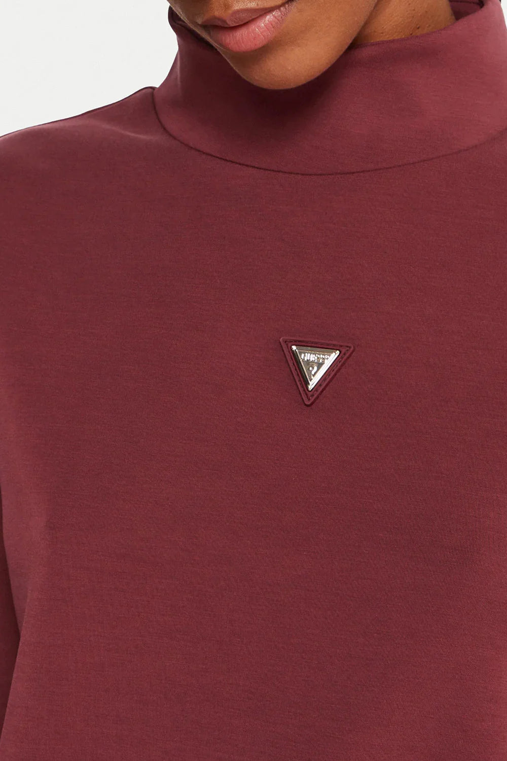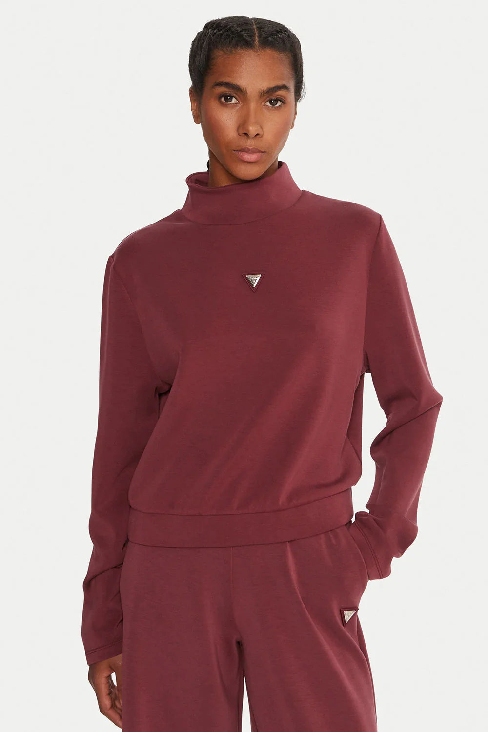 Felpa scuba bordeaux con collo alto di Guess Active, modello V4YQ05KCAY2.