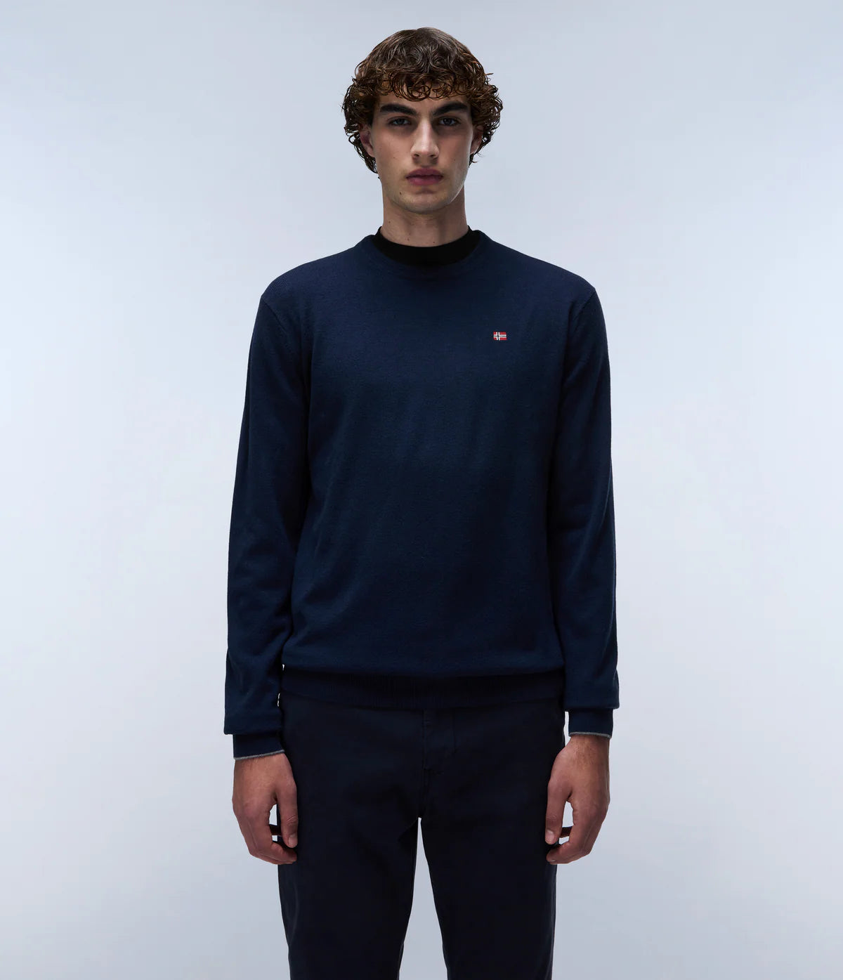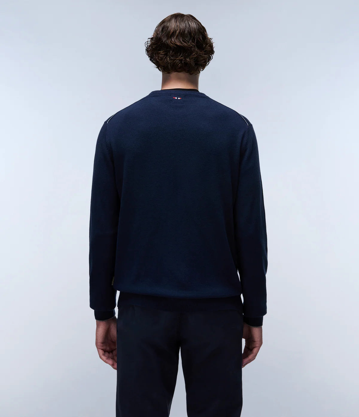Ideale da abbinare a strati, il maglione Damavand in 100% lana presenta girocollo e una piccola bandiera norvegese sul petto.
