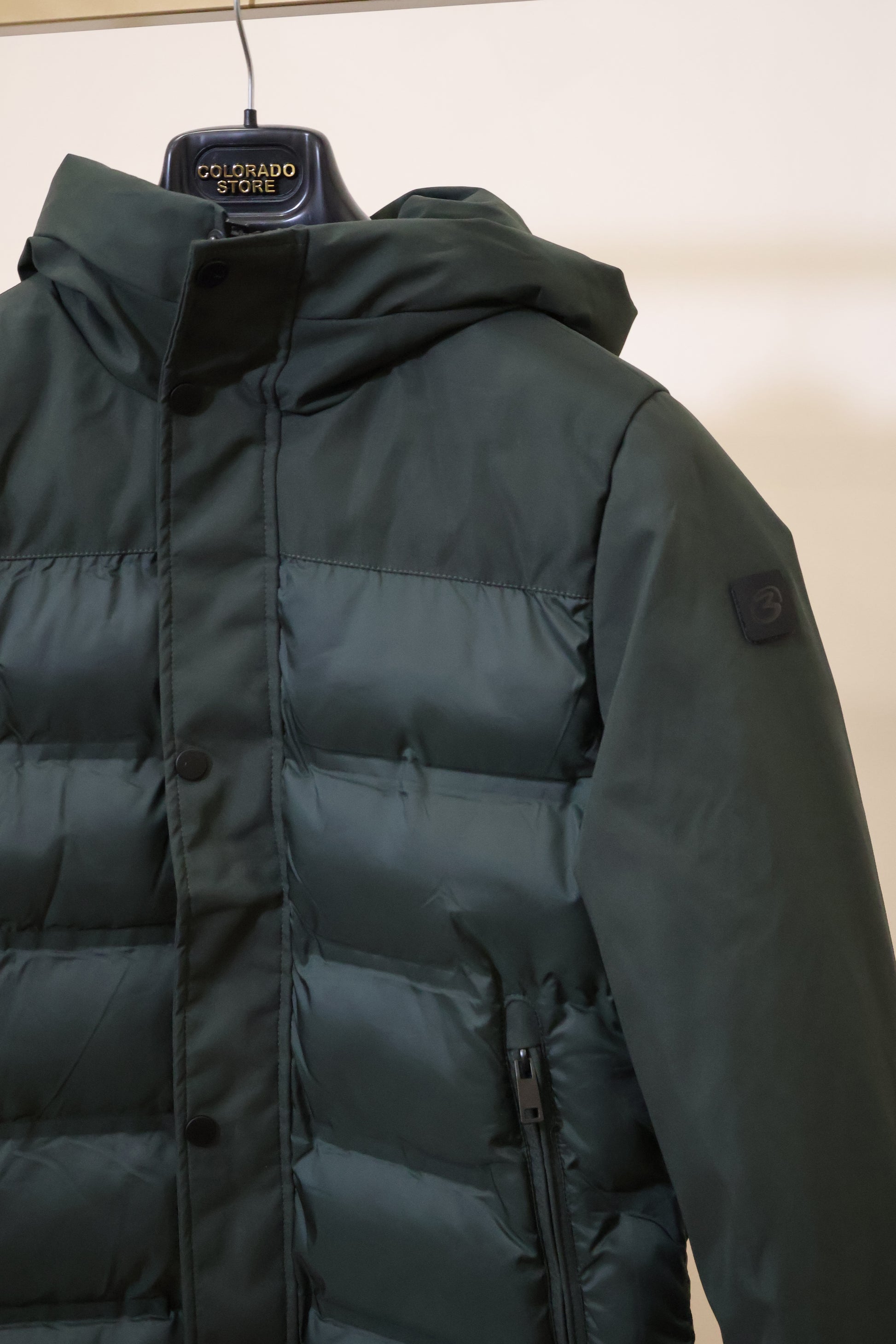 Piumino con cappuccio ,imbottitura 300gr .Cappuccio fisso .