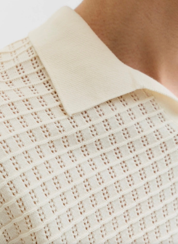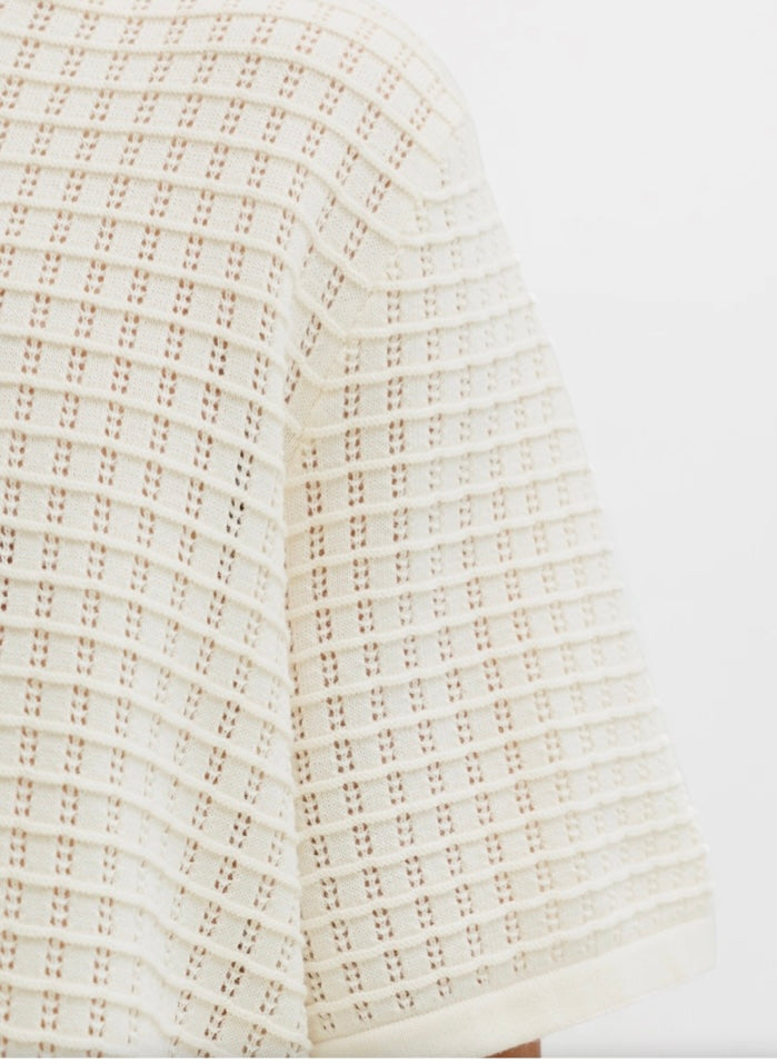 Polo collo bowling,vestibilita’ morbida.Trama traforata . Perfetta per le tue serate è perché no per completare il tuoi outfit da aperitivo summer .