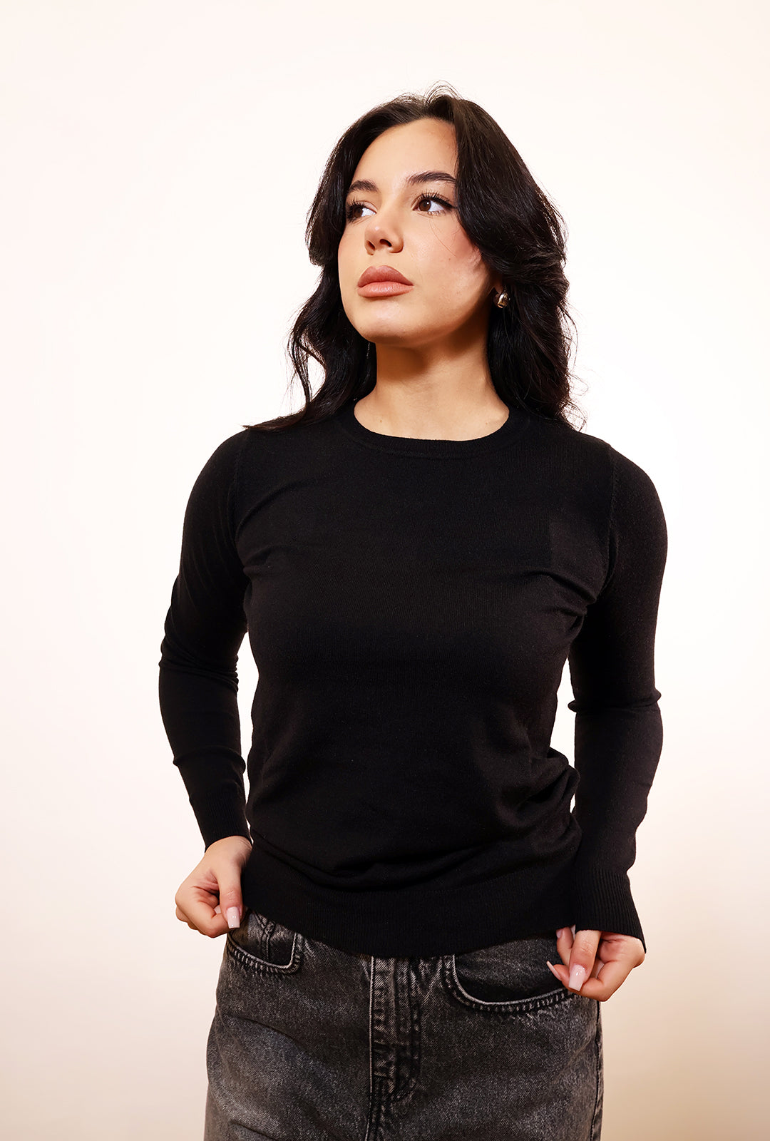 Pullover in viscosa elasticizzata ,ideale anche come sotto giacca in quanto molto aderente ma senza stringere.