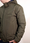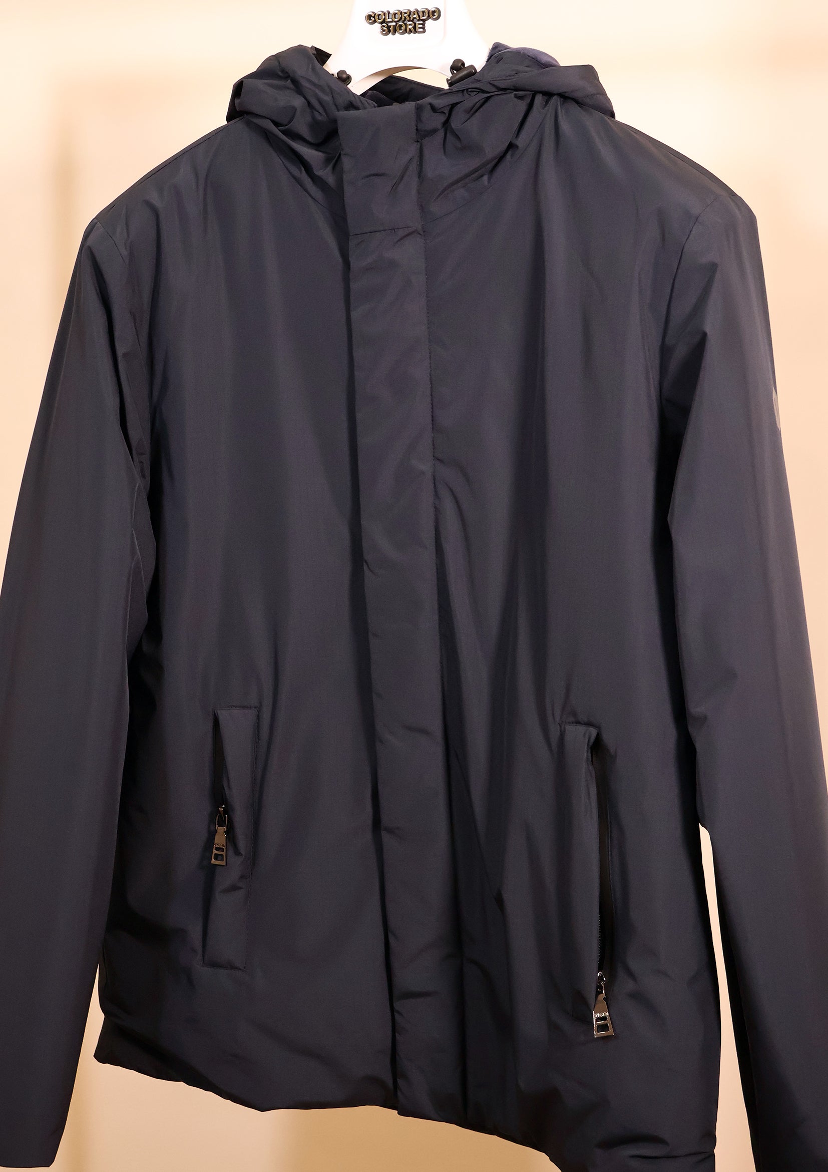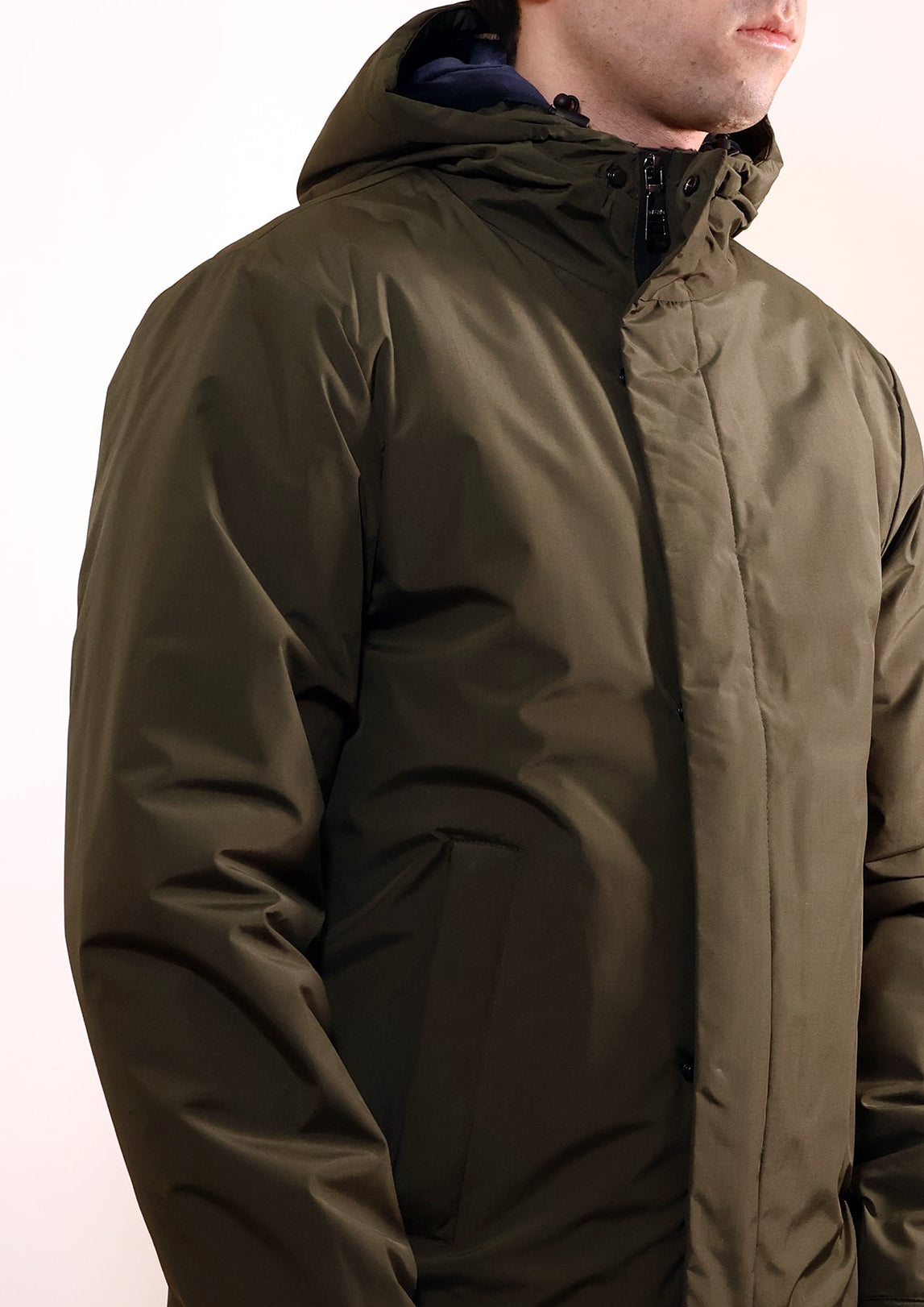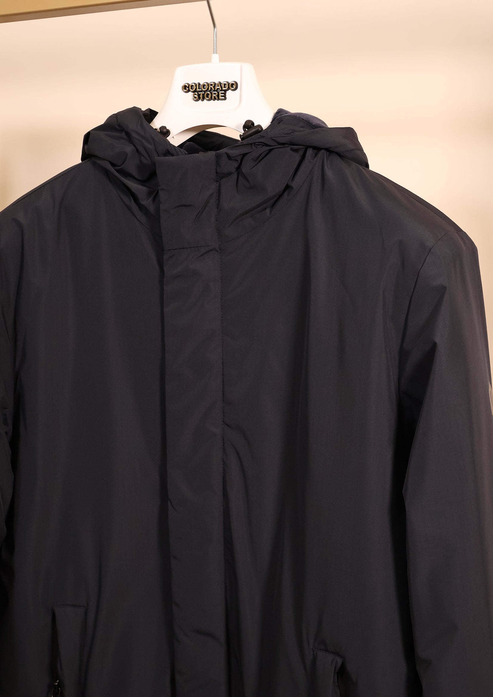 Vestibilita regolare per il GIUBBINO di Over/d ,realizzato in ripstop che assicura impermeabilità al capo e lo rende isolante e traspirante.Interno in calda ciniglia.Con cappuccio per riparti dal vento e pioggia.
