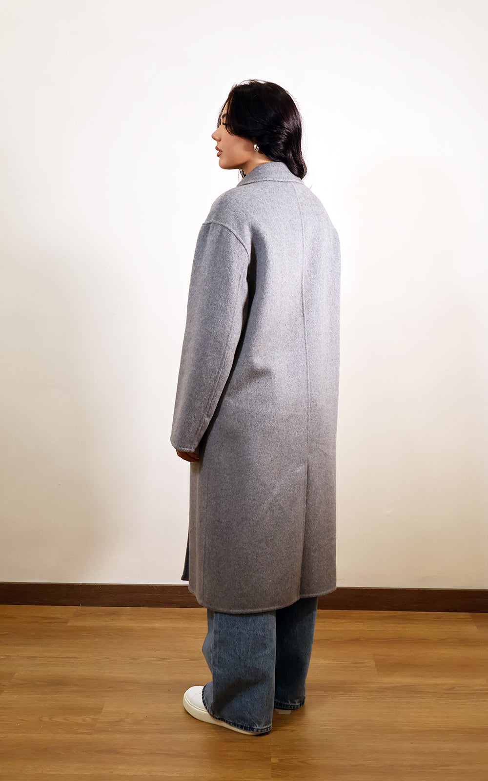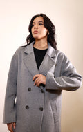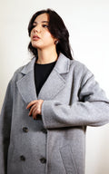 Cappotto Over size,abbottonatura doppio petto per il cappotto in Lana di Gaudi’.Un Must have che completa i tuoi outfit preferiti grazie al grigio perla che si abbina ovunque.