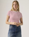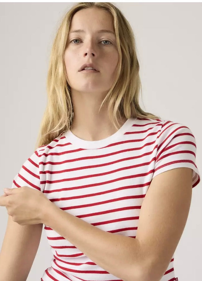 Tessuto a costine in 100%cotone ,vestibilita corta .La fantasia a righe di super tendenza rendono la t -shirt un capi che non può mancare per dare stile e colore ai tuoi outfit.